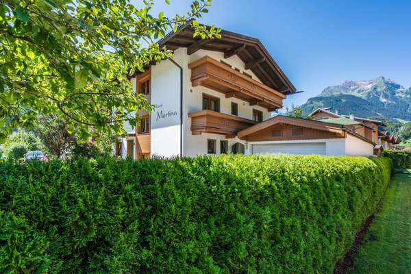Das Haus Martina liegt am Ortsausgang von Mayrhofen in Richtung Finkenberg und Tuxertal. Die Otsmitte und damit die Talstation der Penkenbahn und Ahornbahn sind ca. 1km entfernt. Die Skibushaltestelle befindet sich direkt am Haus. Ein großer Supermarkt ist nur ca. 300m entfernt.